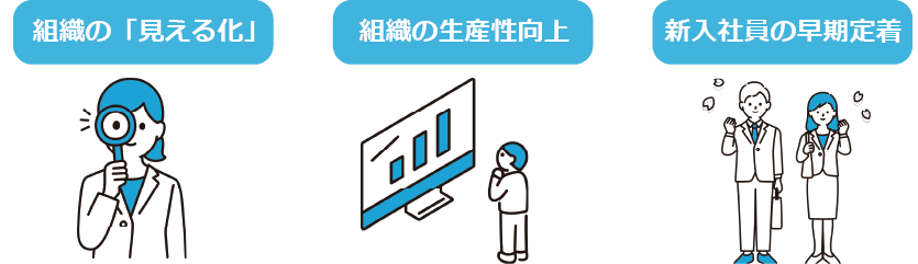 風通しの良い組織をPRすることで求職者への訴求活用や、新入社員の早期定着にもご活用頂けます。